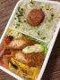 おかずは、サーモンのチーズ揚げとウインナー、ニラ玉、ポテトサラダだよ(≧∇≦)ウインナー以外は全部手作り*